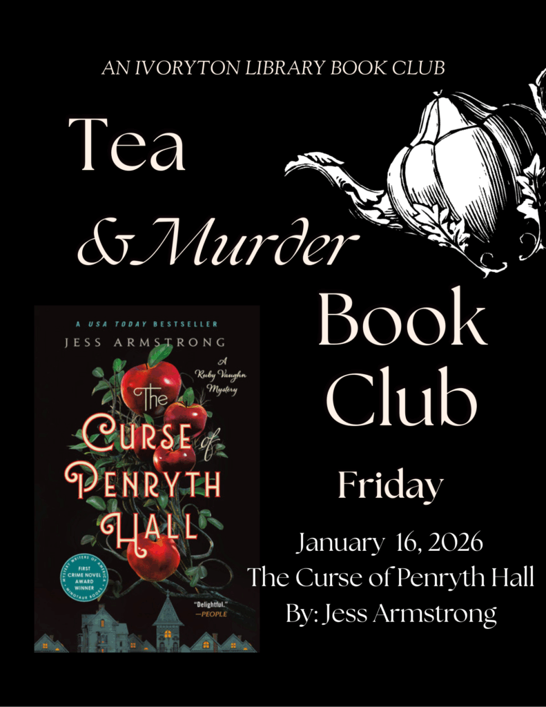 The Tea and Murder Book Club started at the Ivoryton Library in September 2008 with a founding group of 8 that has since grown to twenty. The club has hosted several authors, such as James Hayman, Christine Whitehead, Susan Strecker and David Fulmer, in person and via Skype.